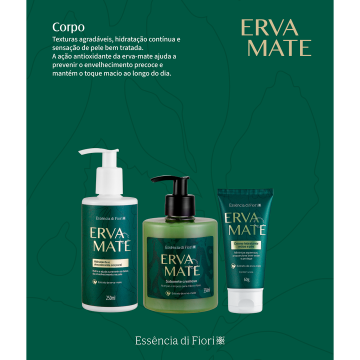 Possui agentes hidratantes e umectantes combinados com extrato de erva-mate. Sua composição cremosa ajuda a manter a hidratação natural da pele, impedindo o ressecamento. Possui pH fisiológico e atua na prevenção do envelhecimento precoce.